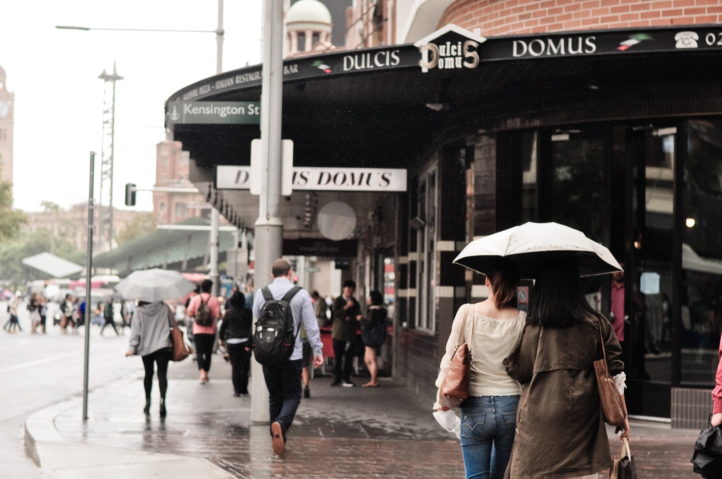 Mấy lần đưa anh đi dạo phố, đi chơi, Hanam hay nói, “đợt này anh em mình phải có một bộ ảnh thật chất anh nhé”. Mình ậm ừ! Cứ mưa thế này thì có mà chất được. Mình đùa vậy, chứ thực ra ảnh là cảm xúc. Chỉ cần có cảm xúc là sẵn sàng nhấc máy lên ngay. Nắng hay mưa với mình không quan trọng, mình là kiểu người khi đi du lịch sẽ không kỳ vọng quá nhiều vào bất cứ điều gì, coi mọi thứ đều là trải nghiệm. Nó đến bởi vì nó phải đến. Vậy thôi. Hơn nữa, Sydney là sự giao thoa của hiện đại và cổ điển. Dưới mưa, cái nét street style theo trường phái cổ điển càng trở nên đậm chất. Nó thu hút mình hơn nhiều so với những ngôi nhà cao tầng hiện đại hay những địa danh nổi tiếng.