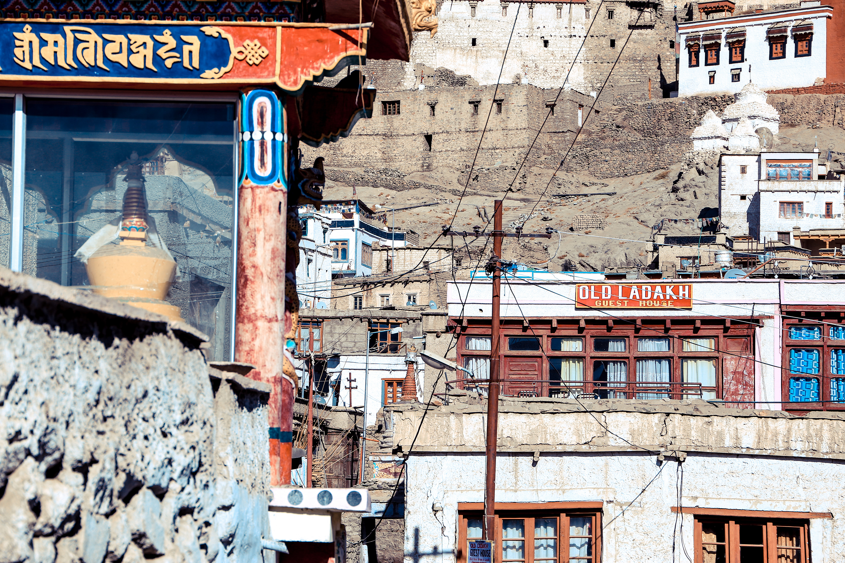 Khách sạn chúng tôi ở có tên là Mount Castle, chỉ cần bước vài bước ra ngoài là có thể bắt gặp Old City. Những ngôi nhà được xây bằng gạch và đá cổ thụ màu trắng nằm tụm lại với nhau trên những vách núi là cảnh tượng có thể dễ dàng bắt gặp, phía xa xa là Cung điện Leh cổ kính.