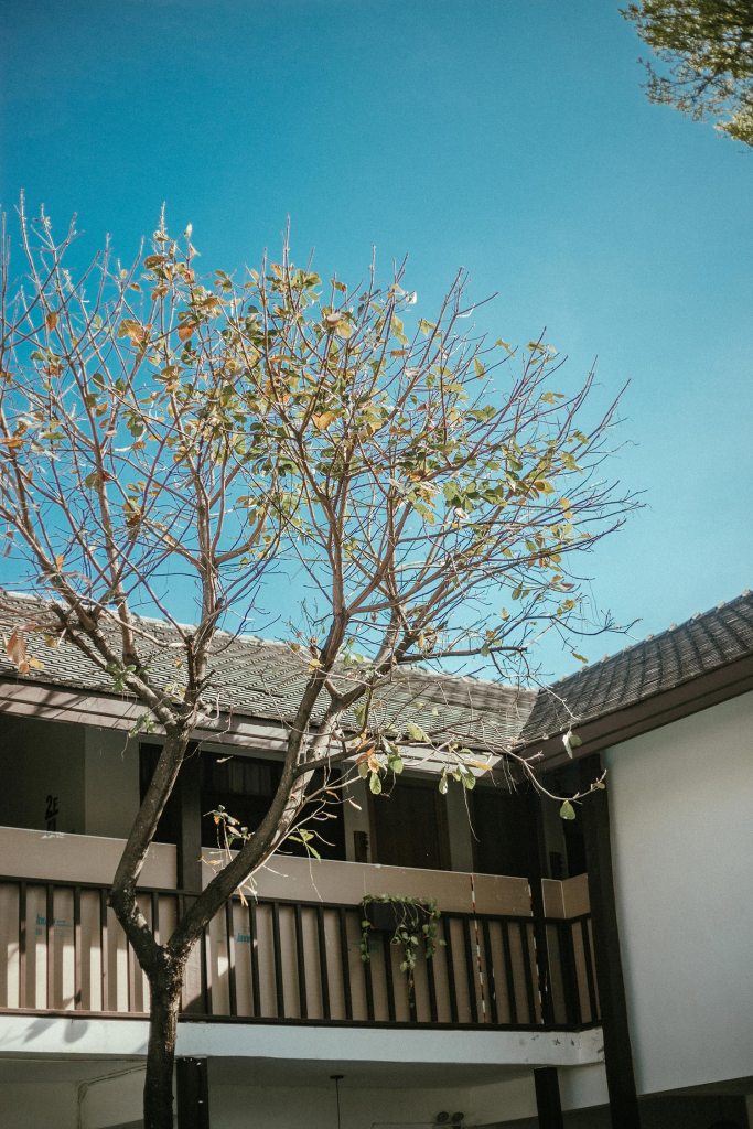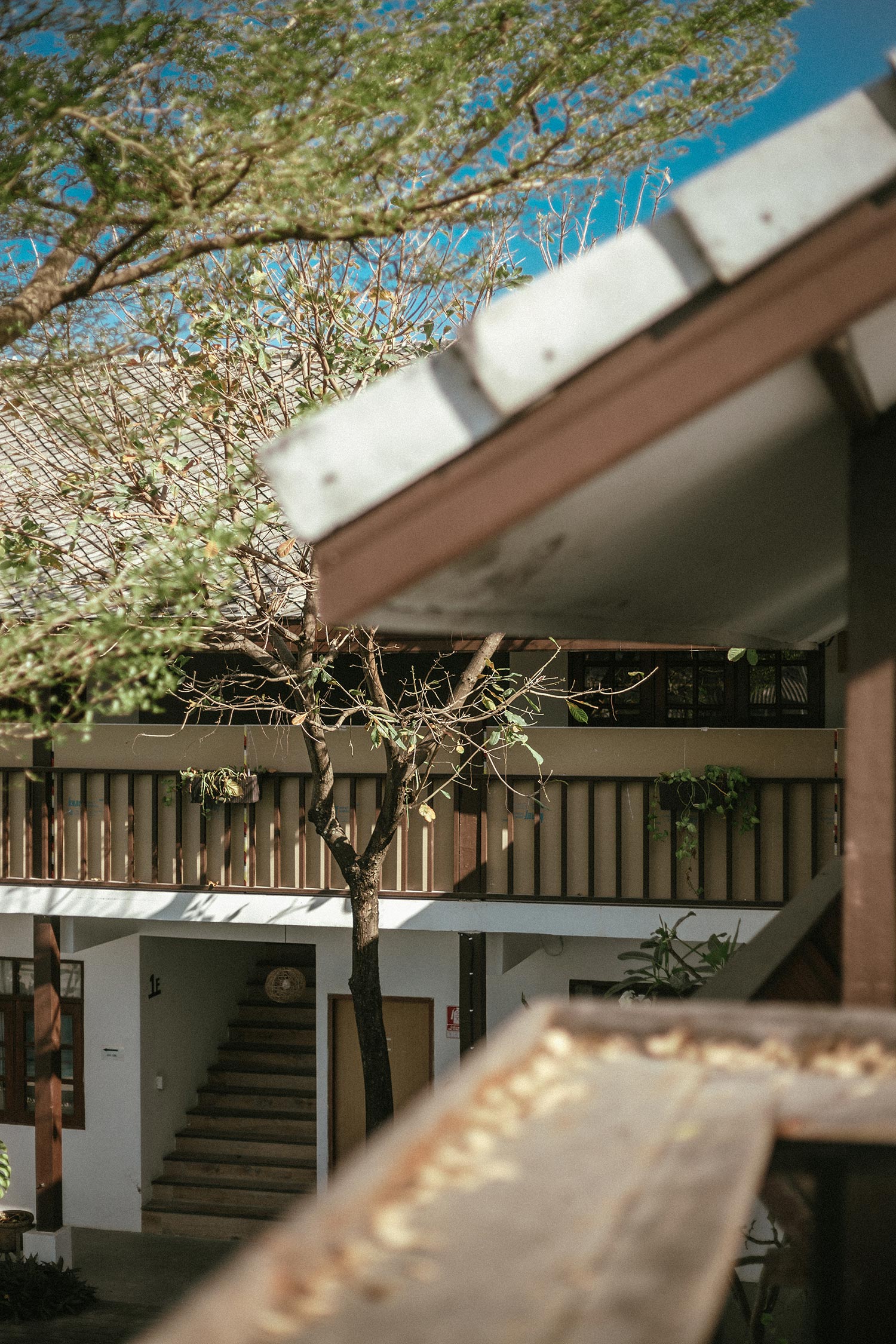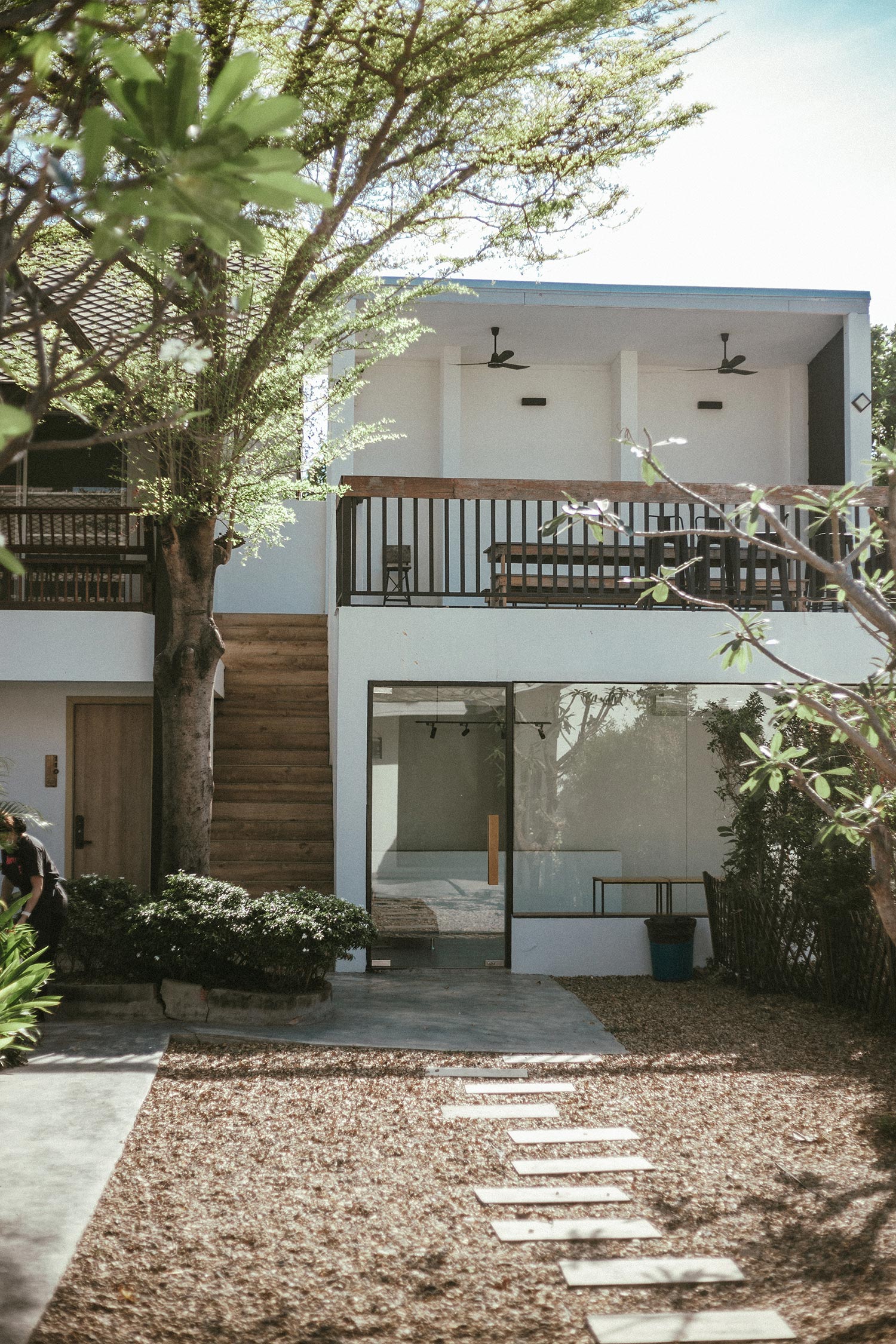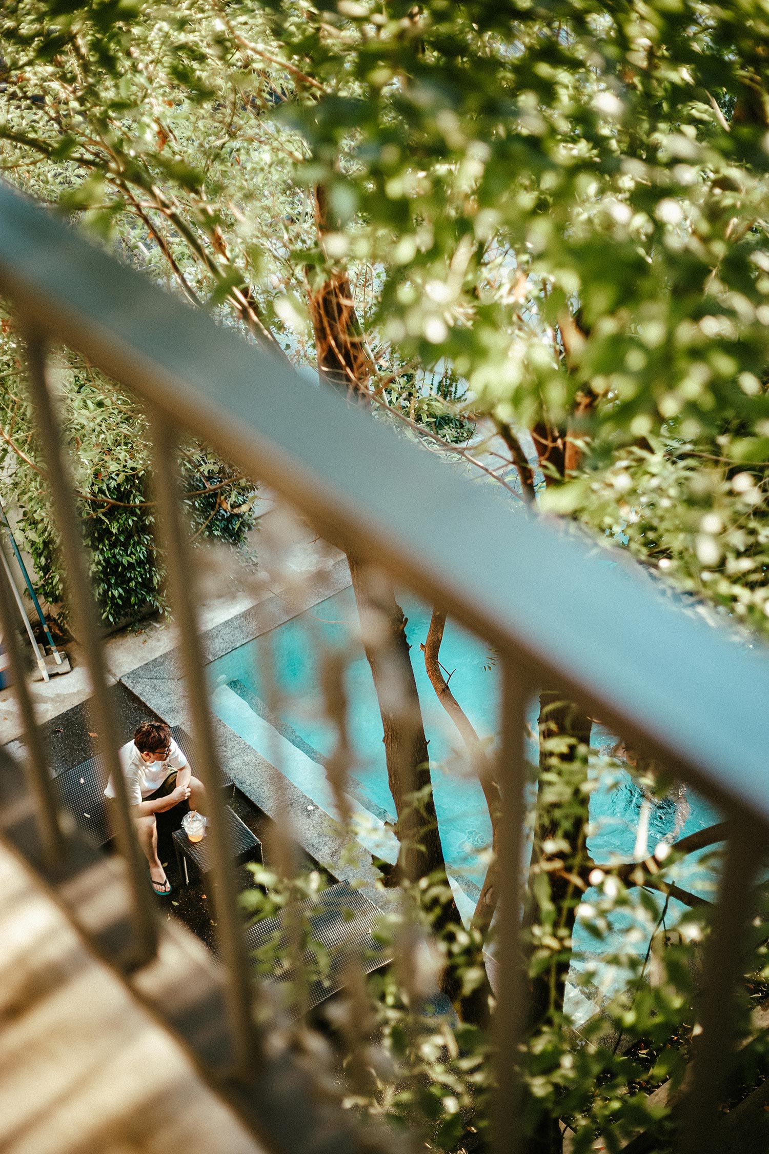 Đây là khách sạn thứ 3 mà bọn mình ở trong chuyến đi này, và cũng là khách sạn mà bọn mình ấn tượng nhất. Khách sạn ở xa trung tâm nên khi đến bọn mình có cảm nhận về tính bản địa khá rõ ràng từ đường phố, xe cộ cho đến không gian xung quanh khách sạn. Có lẽ vì thế mà cái khách sạn mang phong cách minimalism của Nhật này lại như một điểm nhấn trong khu vực với tone màu trắng chiếm gần như toàn bộ không gian kết hợp với nội thất và phụ kiện gỗ đơn giản. Những tấm biển phòng cũng được làm một cách đầy tinh tế và có ý đồ trong việc sắp đặt. Ở giữa khách sạn có một hồ bơi đón nắng, xanh trong như ngọc bích và đẹp tựa trong phim, mỗi tội lá rơi hơi nhiều, nhưng vì cái cây quá đẹp như mùa thu ở Hàn Quốc nên thôi bọn mình chấp nhận, bỏ qua mọi tội lỗi của nó ;D Cứ vài chục phút lại thấy chị phục vụ đi gom lá trên mặt hồ bơi một lần, thấy cũng cực ghê.