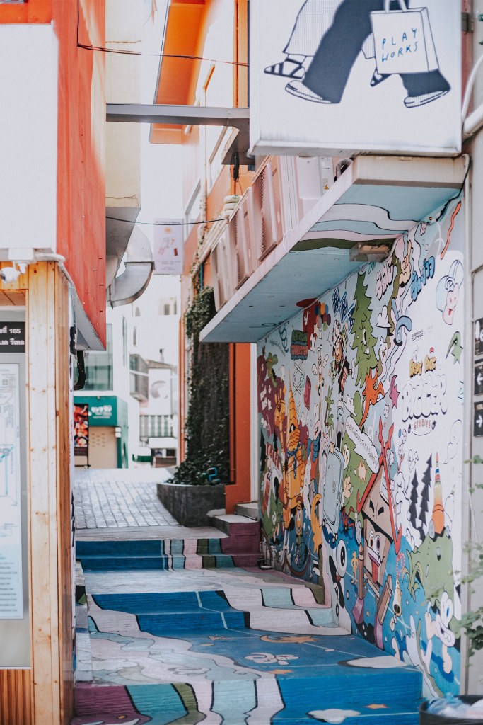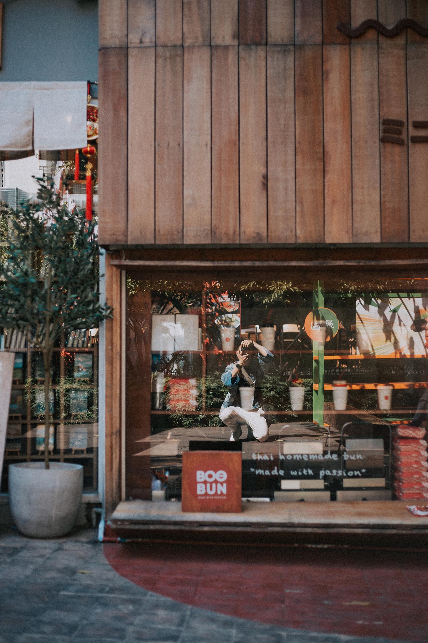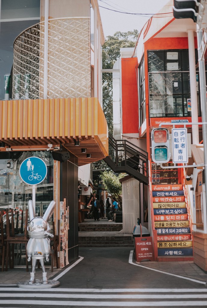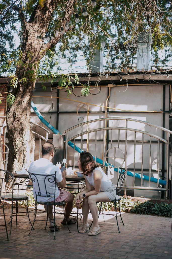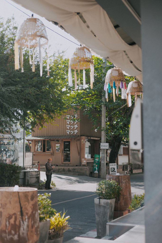 Hàng quán ở đây thì tầm 8h30 sáng mới bắt đầu mở cửa, nhưng bọn mình đã ăn sáng rồi nên cứ lững thững thôi. Nhân tiện nhắc đến việc ăn sáng, hôm nay bọn mình bắt được một chị lái xe dễ thương xỉu. Chị recommend cho bọn mình một quán ăn local rất ngon nằm ngay gần Think Park có tên là Kopy Nimman, nếu định qua Think Park buổi sáng như bọn mình thì mọi người nhớ ghé thử nhé. Quán hơi kiểu Hồng Kông và có khoảng sân rất rộng và thoáng, phù hợp để ăn sáng. Mình được ăn lại món bánh Toast kem Custard 4 màu nhưng phiên bản đầy hơn và nhiều thịt hơn. Ở đây có cả bánh trôi tàu ngon xỉu nhé, cái nhân của nó thơm, mịn và tan trong miệng như bánh đậu xanh ấy nhưng lại có vị mè đen. Ở quanh đó cũng có mấy quán cà phê và quán ăn nhìn đẹp lắm. Bọn mình chỉ đi qua nhưng thấy cưng xỉu. Bạn đồng hành giữ vai trò time keeping nên push mình liên tục chứ không mình cứ vừa đi vừa dừng lại chụp choẹt chắc đến tối chưa ra được Think Park mất mặc dù chỉ cách đó vài trăm mét.