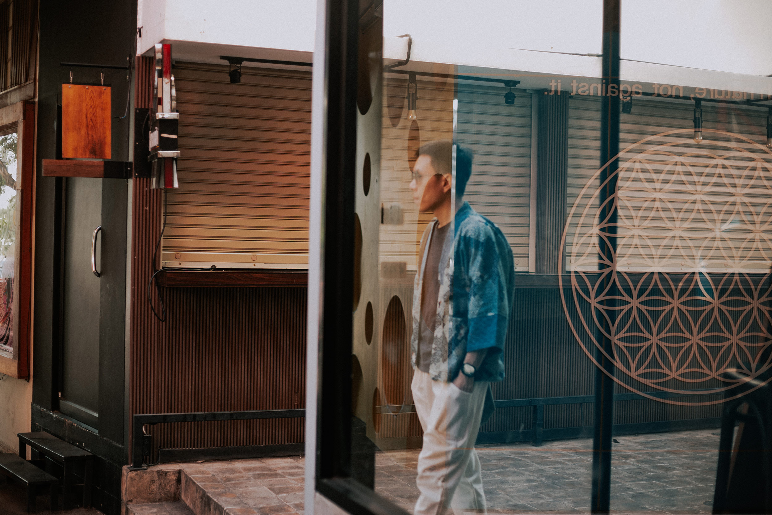 Aono mang phong cách minimalism với những mảng tường trắng xuyên suốt, những không gian mở chiếm phần lớn không gian và điểm nhấn là những cánh cửa gỗ sáng màu trước những căn phòng nhỏ chạy vòng quanh hồ bơi màu xanh ngọc lóng lánh mà chỉ cần mở cửa ra là có thể nhảy xuống bất cứ lúc nào. Ở ngay góc hồ bơi có một chiếc cây to mang cái vibe Hàn Quốc đủ để lấp đầy không gian xinh xẻo này, bởi thế mà cất đồ xong, bọn mình không vội rời khỏi khách sạn mà muốn thả mình trong không gian này thêm một chút nữa, đơn giản là chỉ ngồi nghỉ ngơi rồi bơi vài vòng cho cơ thể tươi mới và sảng khoái. Nắng thì cứ đua nhau mà luồn lách qua những nhánh cây, phản chiếu trên những mảng tường trắng tối giản, còn gió thì cũng không kém cạnh, lùa cho lũ lá khô rơi lã tã xuống hồ bơi, lãng mạn thì có đấy, nhưng chỉ khổ chị lao công cứ vài chục phút lại phải đi vòng quanh vớt lá trên hồ bơi một lần. Nhưng phải nói thời tiết ở Chiang Mai vào tháng 2 thật biết chiều lòng người, cho dù không hoàn toàn giống như hình dung của mình trước khi đến, nhưng cơ bản là dễ chịu và đủ để những trải nghiệm của bọn mình được diễn ra một cách trọn vẹn.