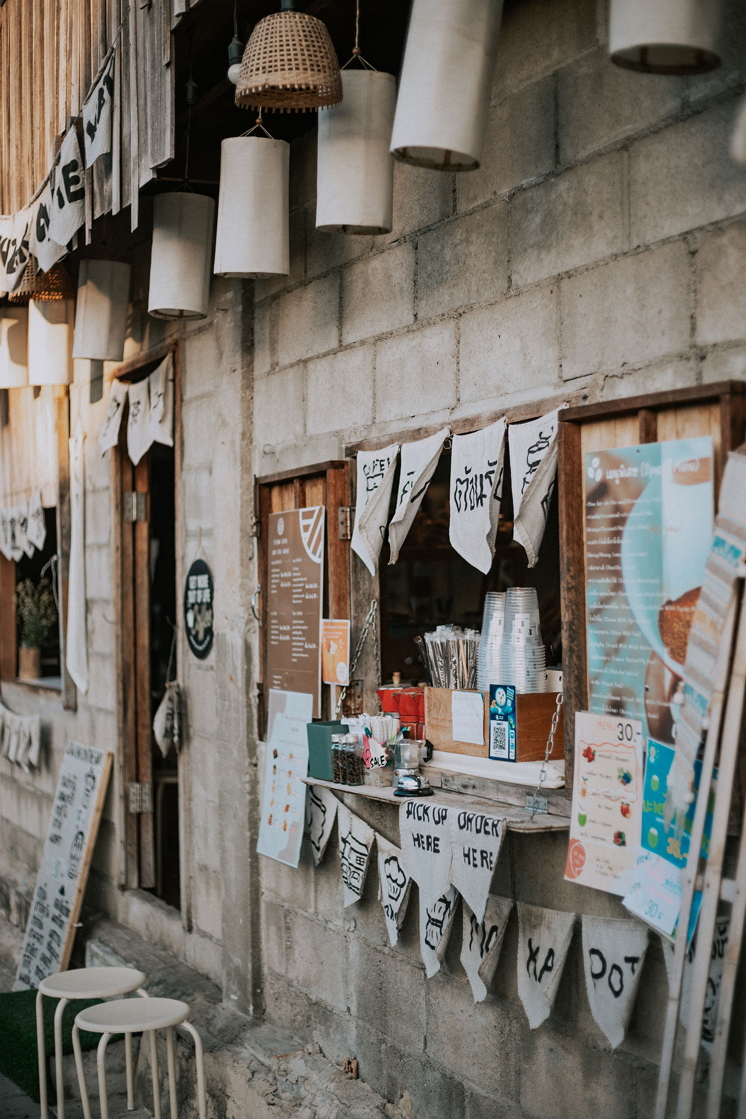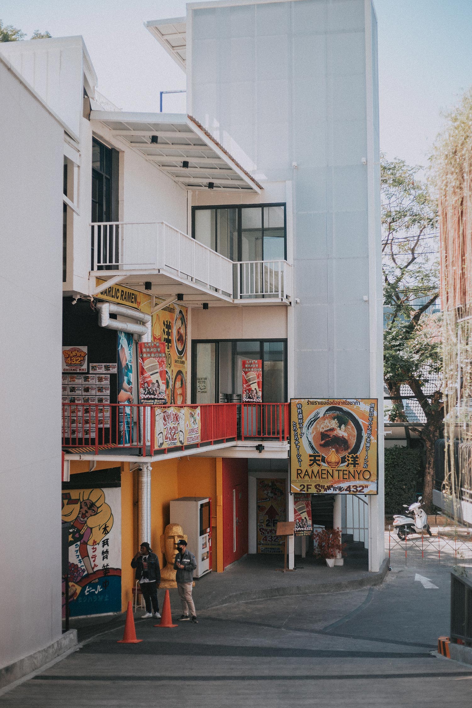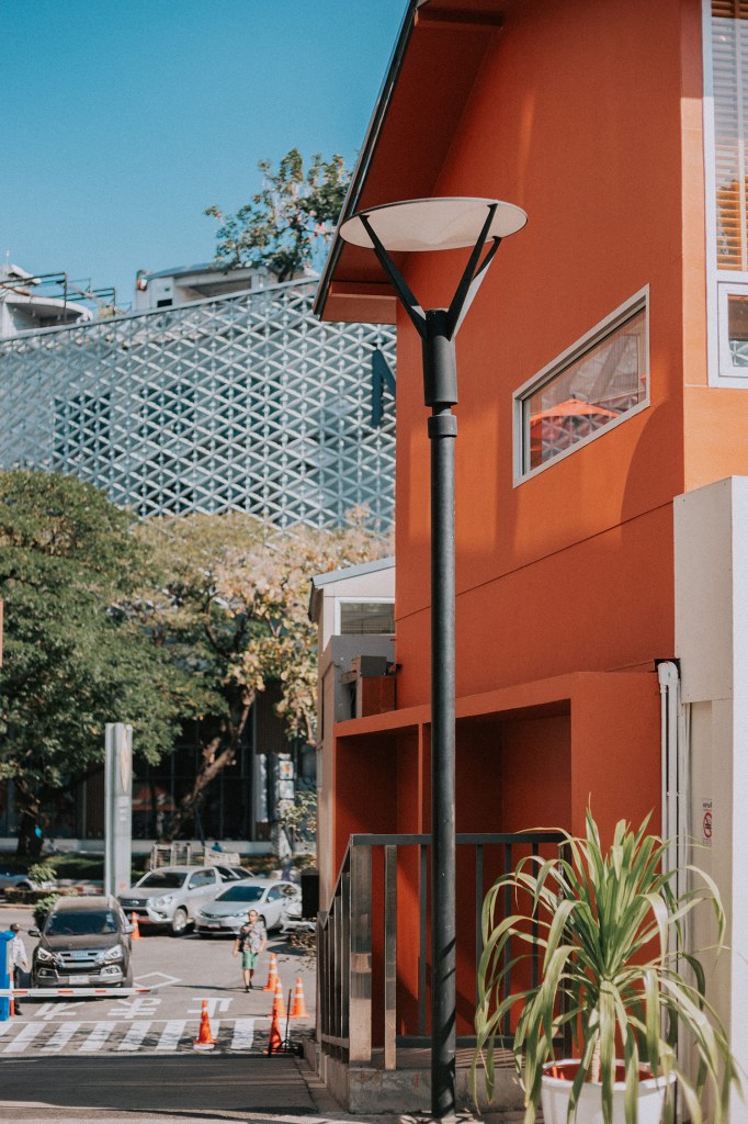 Think Park buổi sáng sớm và là ngày trong tuần nên rất vắng vẻ. Bởi thế mà bọn mình mới có đủ không gian để thảnh thơi nhìn ngắm mà không sợ chen chúc, chứ đi buổi tối mà đặc biệt là mấy ngày cuối tuần thì đừng hòng nhé. Nắng sớm ở Chiang Mai rất đẹp làm cho cái tổ hợp sáng tạo này lộ ra đầy những góc nghệ thuật, trong sáng, trong tối mà chỉ cần đứng vào thôi cũng có ngay ảnh đẹp. Mấy bạn đam mê phong cách kiểu Nhật bản, Hàn Quốc thì nhớ cho địa điểm này vào plan, thỉnh thoảng bọn mình có cảm giác như được bước vào một bối cảnh anime nào đó chứ không phải đang ở Thái vậy.