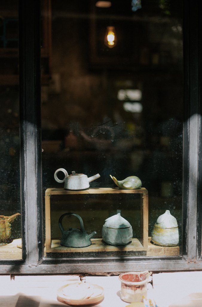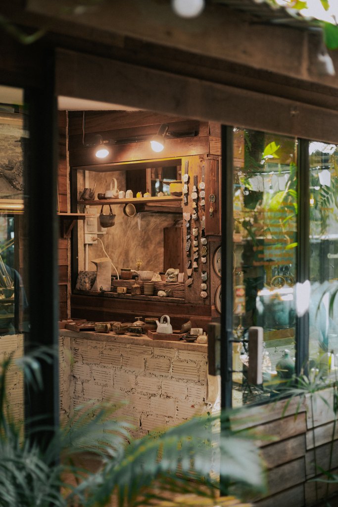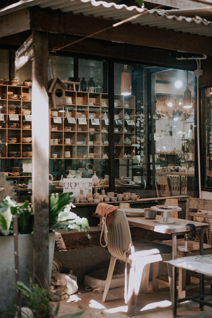 Ở cuối làng còn có một quán cà phê nhỏ màu xanh coban với đồ uống ngon và chỗ ngồi xinh xắn, giá đồ uống cũng rất hợp lý, nhìn sang phía đối diện là một cửa hàng gốm chế tác với gam màu rustic đặc trưng, mình không nhầm thì họ có dịch vụ hướng dẫn khách du lịch tự tay tạo ra các sản phẩm của riêng mình trong thời gian ngắn, nếu không vội vàng rời đi thì bạn có thể thử. Làng Ban Kang Wat mở cửa từ 10h sáng đến 15h30 chiều các ngày trong tuần (trừ Thứ 2). Còn bọn mình có lịch chuyển khách sạn vào buổi chiều nên bọn mình không nán lại lâu hơn được.