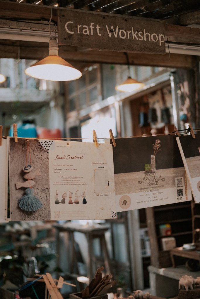 Có những sản phẩm thủ công được làm ra từ bàn tay của những người nghệ sỹ với chất riêng không lẫn vào đâu, rất nhiều trong số đó là sản phẩm độc bản, và tất nhiên là giá không rẻ – cũng giống như những gian hàng đồ thủ công và local brand ở các khu chợ nghệ thuật khác như White Market hay Jing Jai, nhưng cho dù thế, cái cảm giác để cho tâm hồn mình được len lỏi giữa những tâm hồn bay bổng và sáng tạo khác đã là một món quà mà bọn mình nhận được cho chuyến đi này rồi.