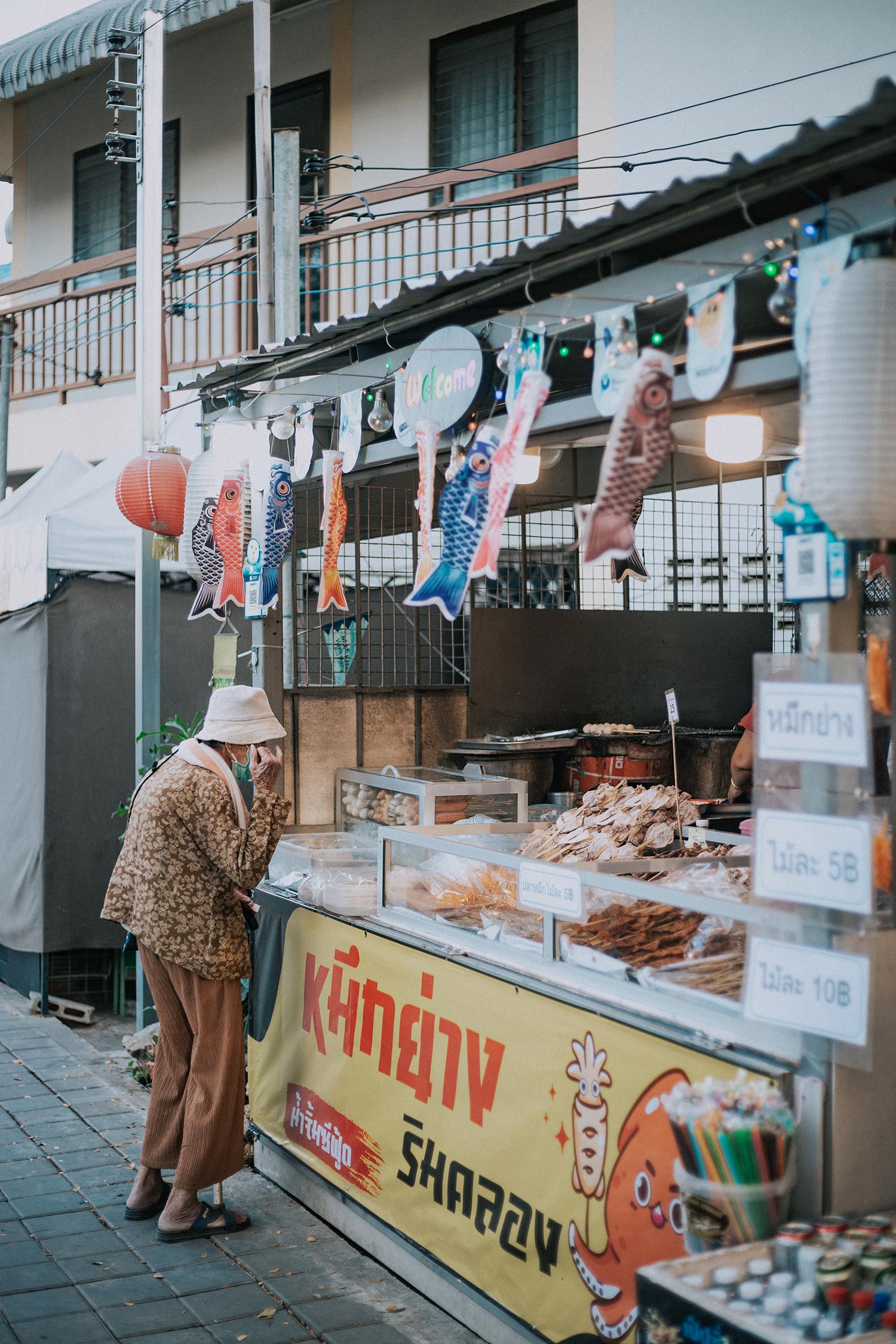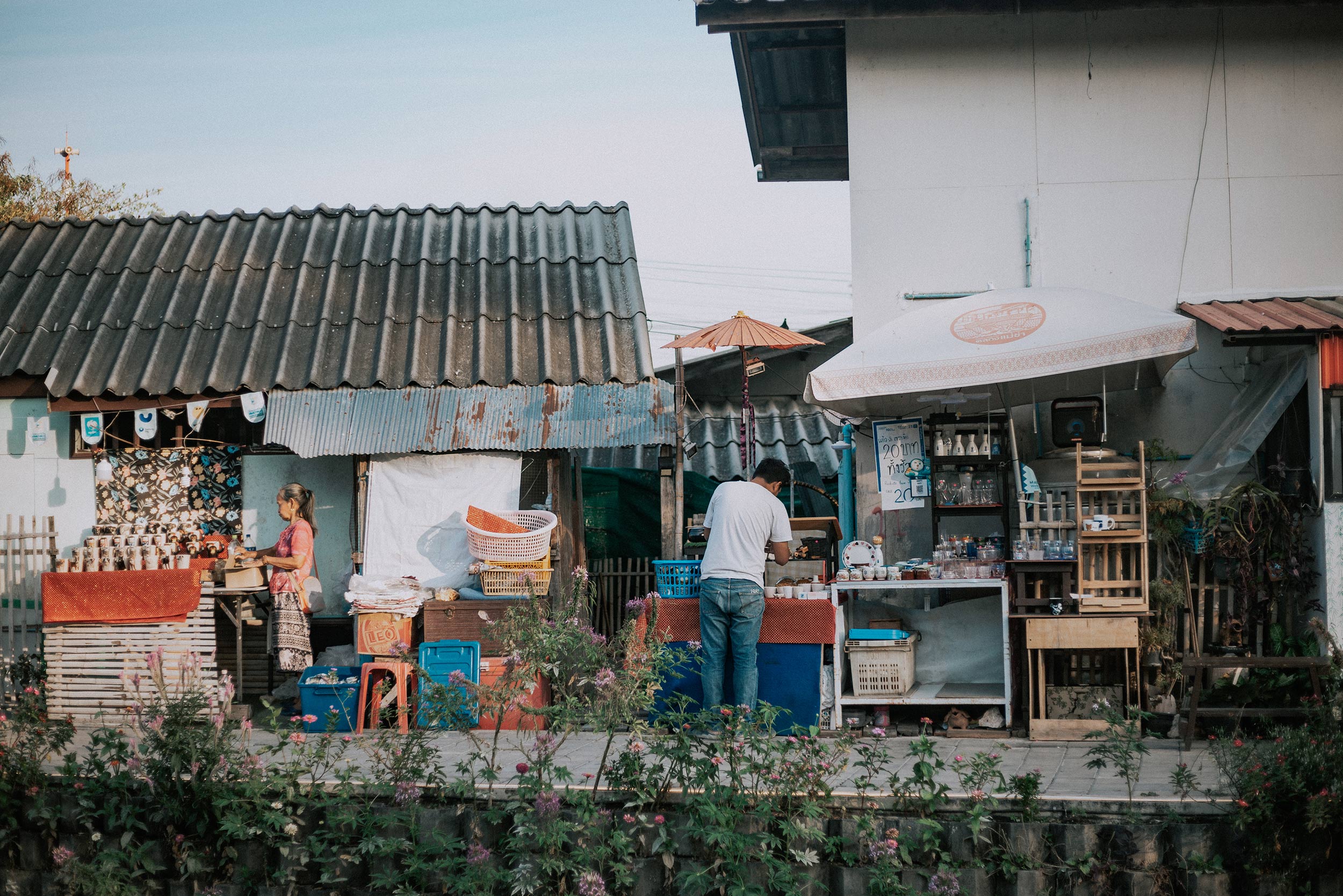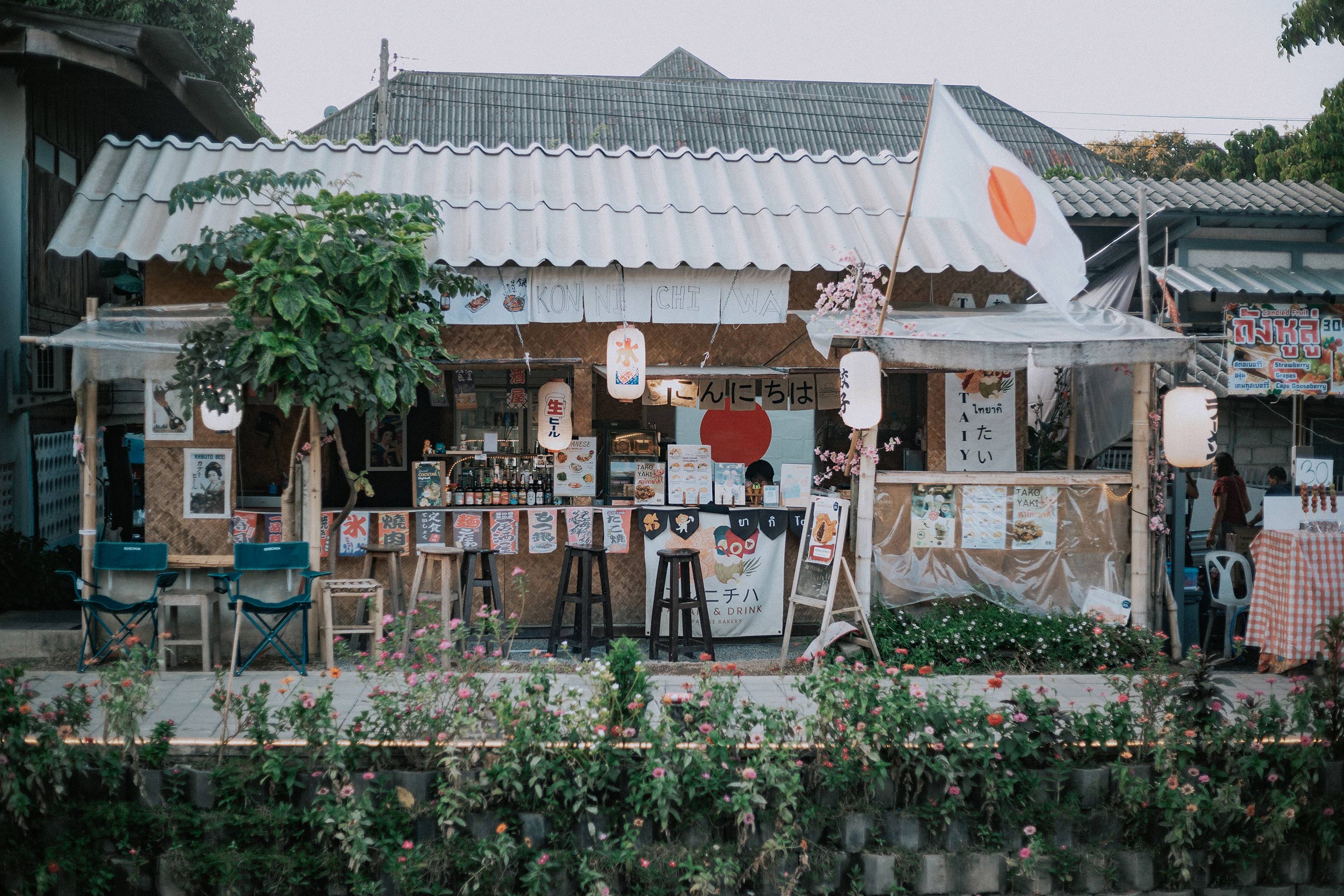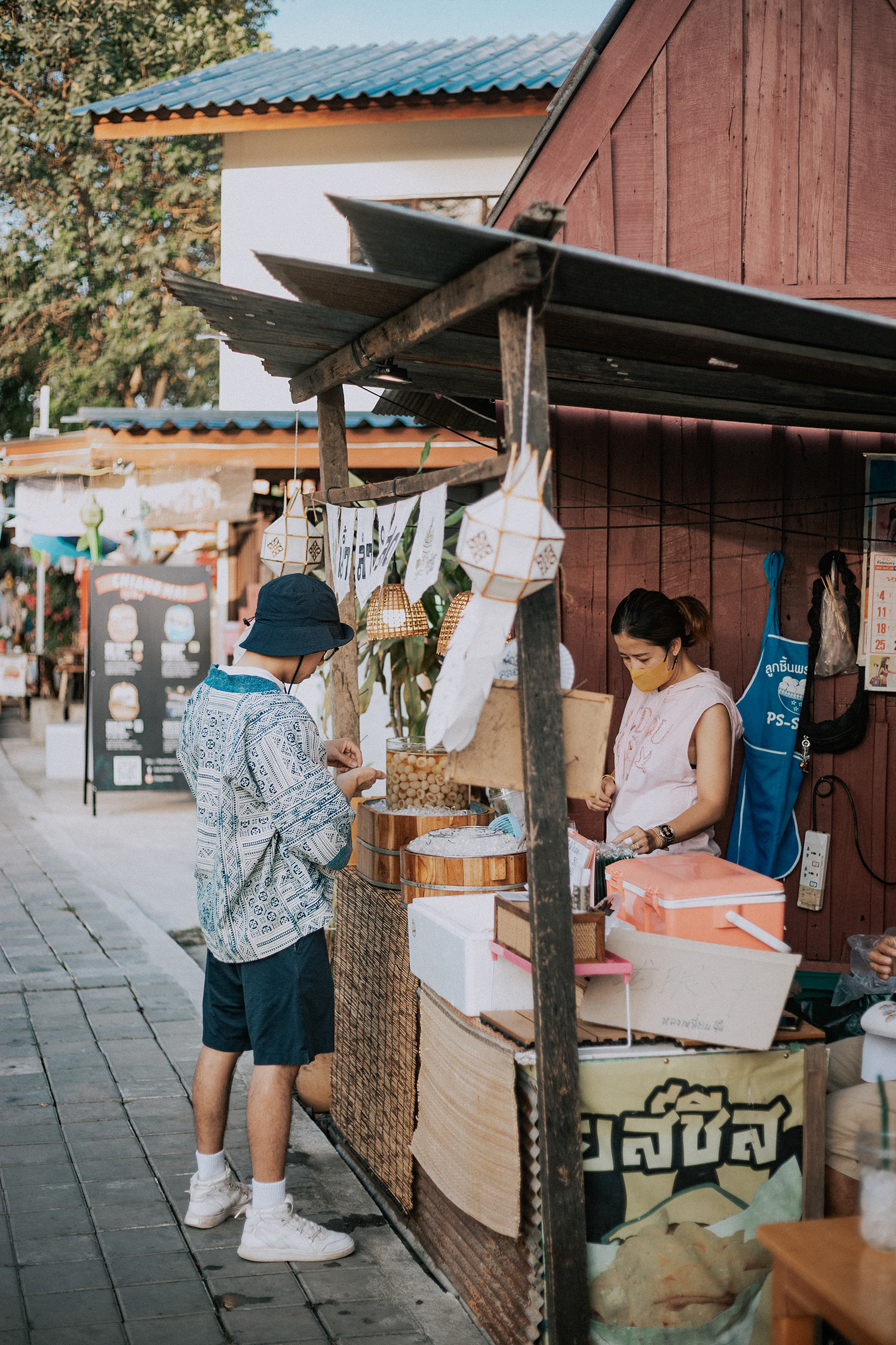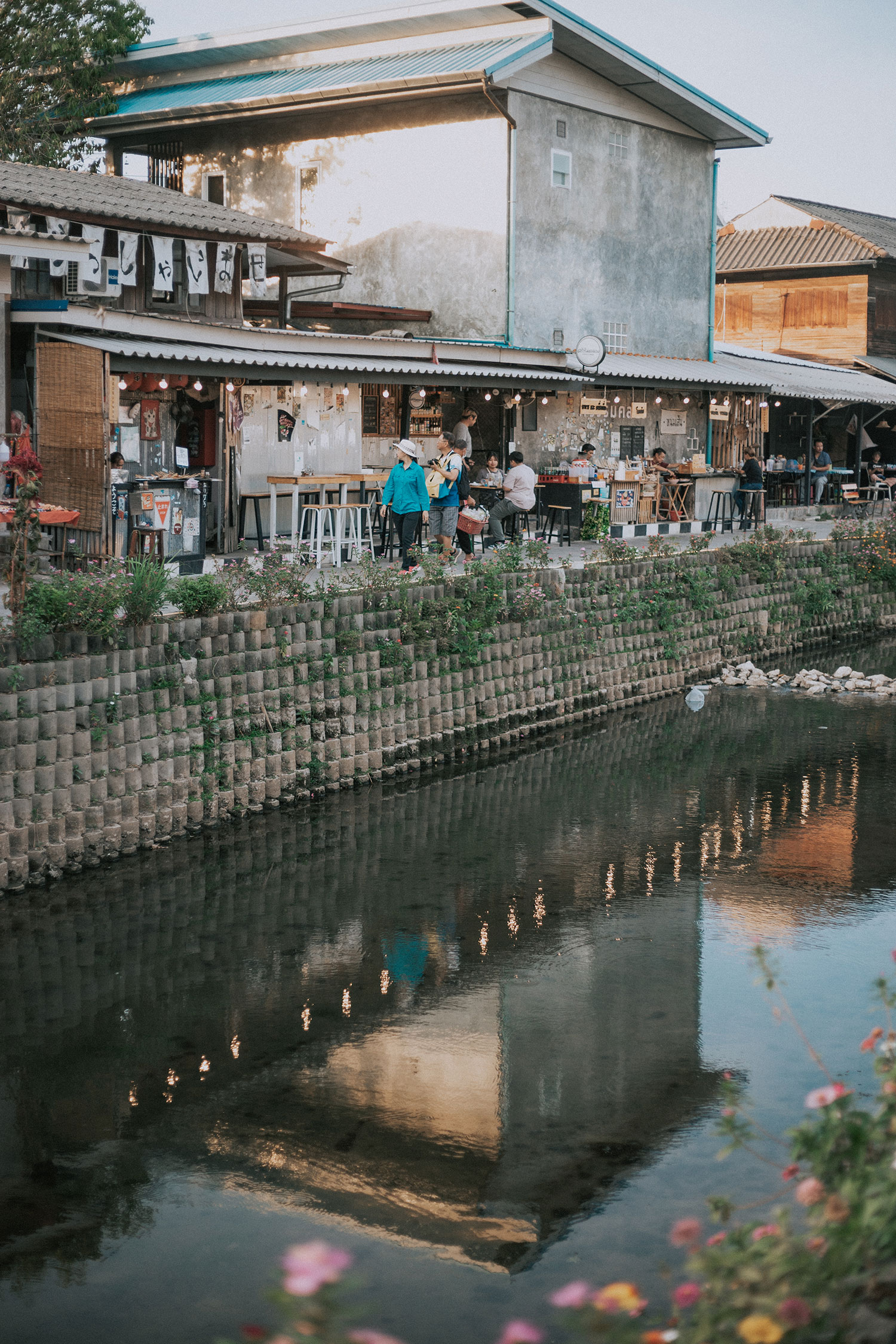 Buổi chiều hôm ấy, ngẫu nhiên bọn mình biết được có một khu chợ địa phương cách Aono chỉ vài bước chân có tên là Khlong Mae Kha – một khu chợ địa phương khá mới và nhỏ, chưa được khách du lịch biết đến nhiều, một phần vì nó ở xa trung tâm, và giữa vô vàn những khu chợ nổi tiếng khác của Chiang Mai thì khách du lịch sẽ có nhiều lựa chọn gần hơn và tiện lợi hơn để ghé đến. Thế nên bọn mình thấy khá may mắn khi kéo dài lịch trình từ 5 ngày 4 đêm thành 6 ngày 5 đêm để được trải nghiệm nhiều hơn và đặc biệt là chọn được Aono để có thể cảm nhận thêm một chút cuộc sống của người dân bản địa khu vực xa trung tâm.