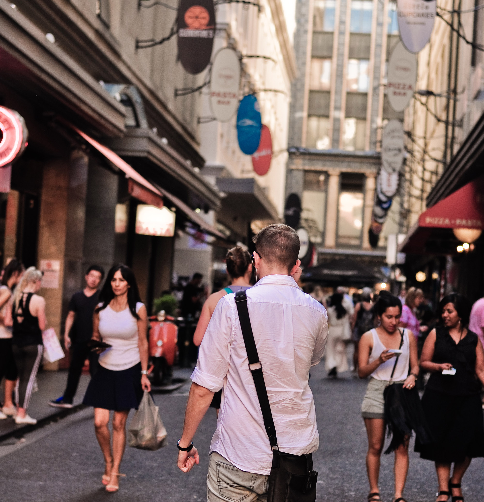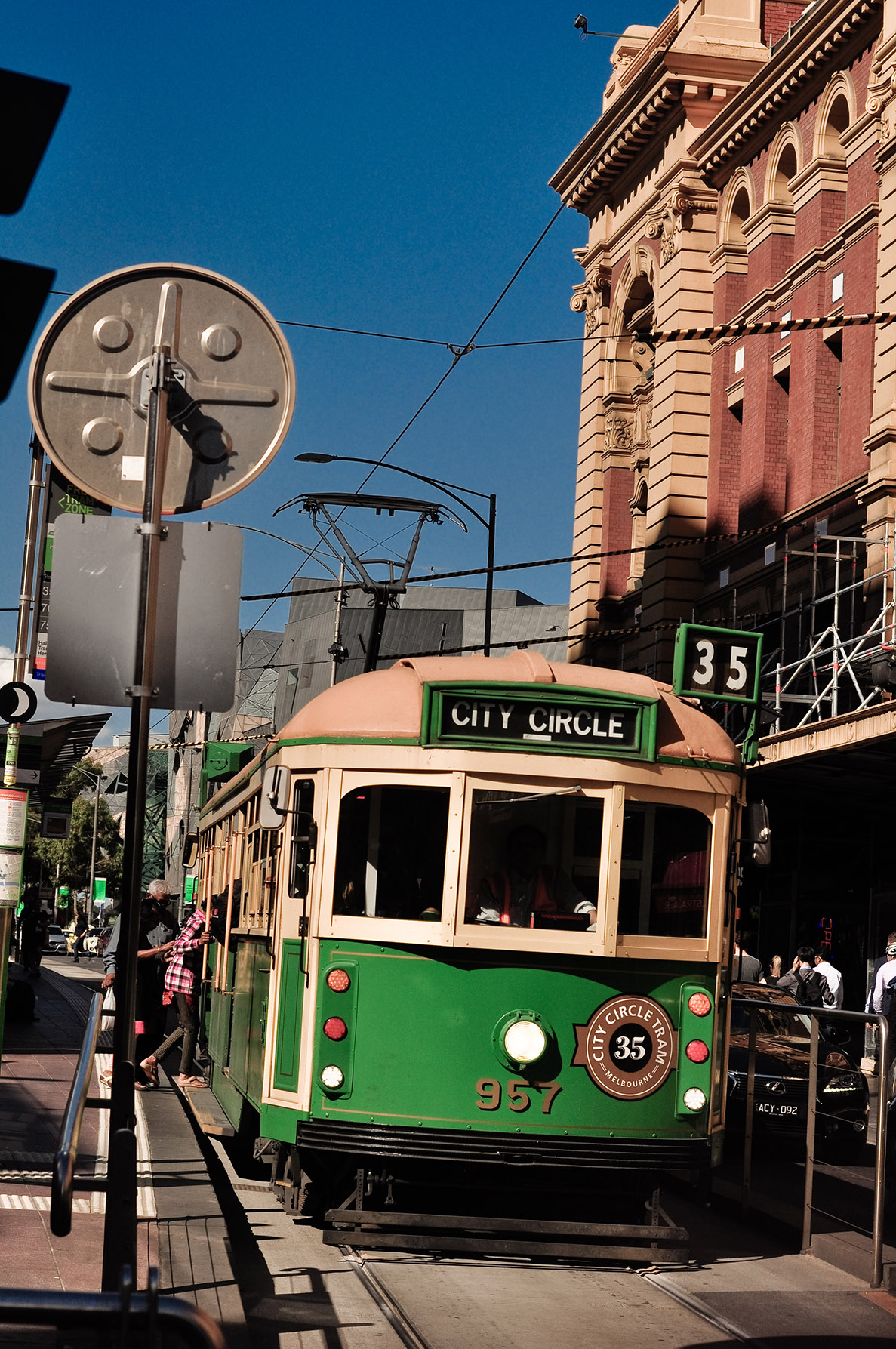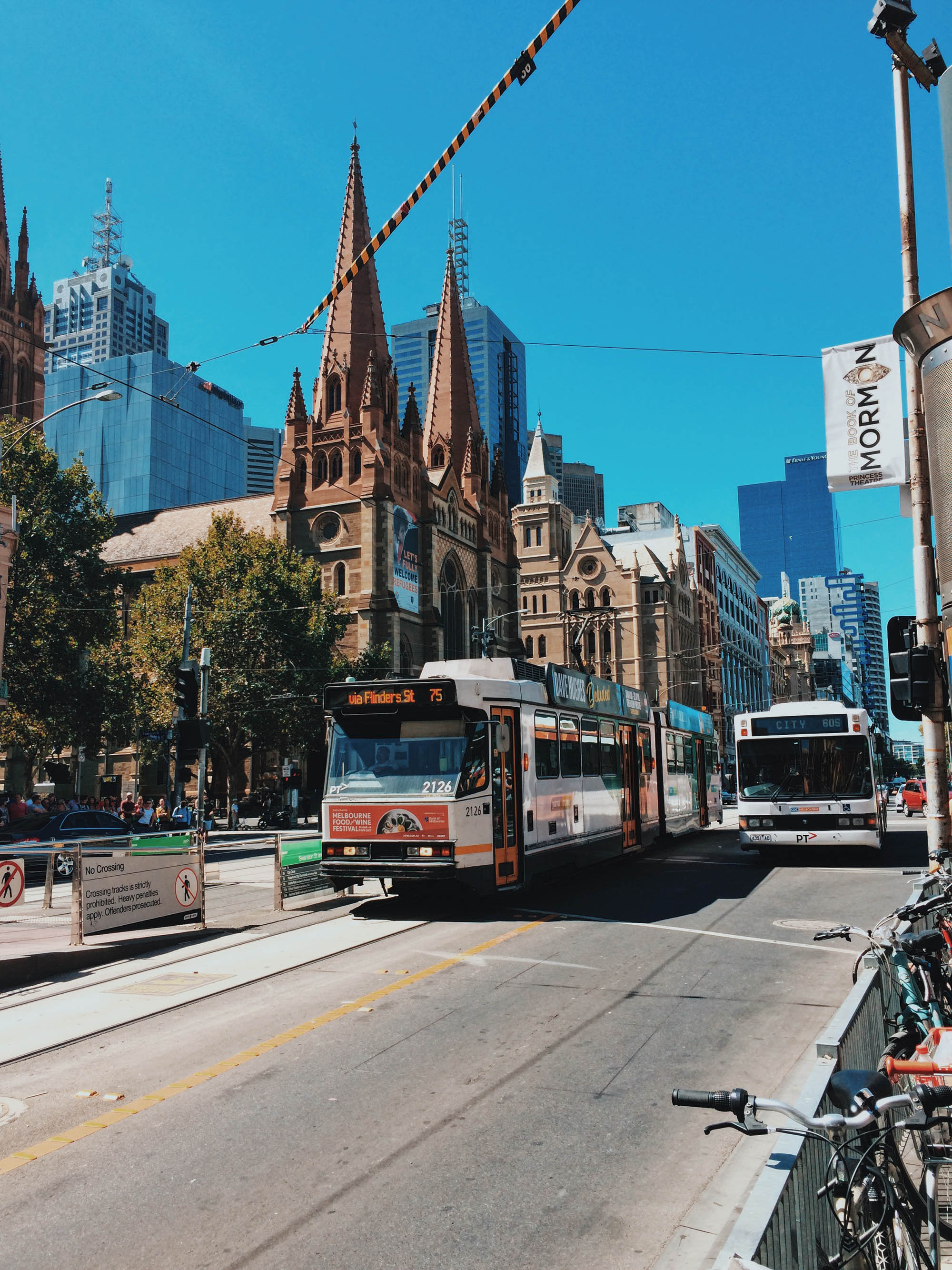 CBD – dịch ra là Central Business District – khu vực trung tâm hành chính và thương mại của một thành phố. Khu vực trung tâm hành chính và thương mại của Melbourne khá đông đúc. Bên cạnh những tòa nhà cao tầng mang phong cách và kiến trúc cổ điển, những mảng tường gạch nâu đỏ đặc trưng, bạn có thể dễ dàng bắt gặp những khoảnh khắc street style điên đảo và chất lừ, cộng thêm cái màu vàng của nắng nhuộm rực ngay cả trong những ngõ hẻm khiến mình càng đi càng bị hút vào mọi thứ. Cái không khí ấy, những khung cảnh ấy, mình không biết phải diễn tả như thế nào cho đúng, nhưng Melbourne CBD và những chiếc tàu điện (Tram) cho mình cảm giác như đang được quay trở lại quá khứ, những tòa nhà chọc trời với kiến trúc ấn tượng, khác biệt thì cho mình cảm giác như đang ở thời tương lai, còn “cái nôi nghệ thuật” – đừng chỉ nghĩ đến những Art Gallery hay Art Museum,… bởi chính Melbourne, trong từng ngóc ngách, từng hơi thở, từng bước đi, đều đậm chất nghệ thuật… Và ở đây, chỉ cần giơ máy lên, bất cứ lúc nào bạn cũng có thể bắt được một khoảnh khắc Street Style tuyệt đẹp…
